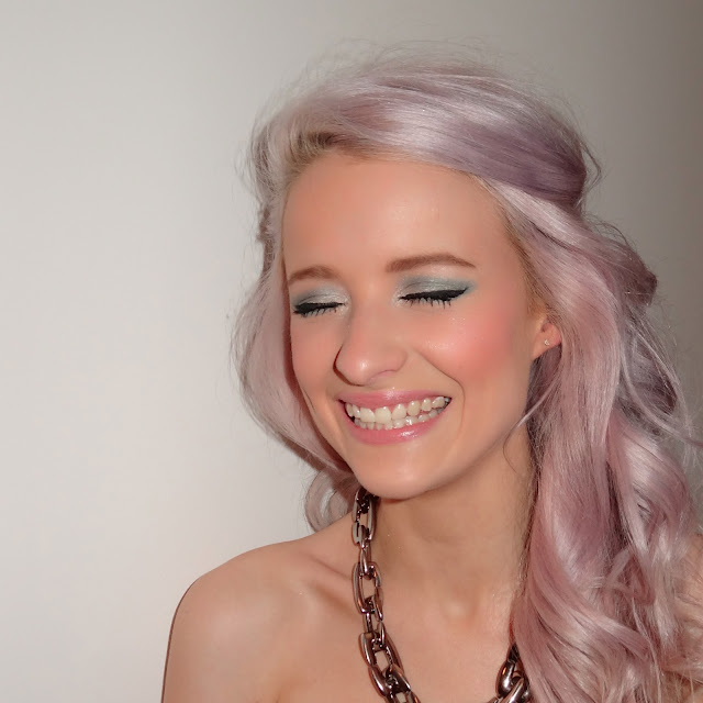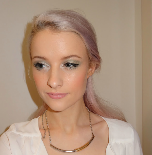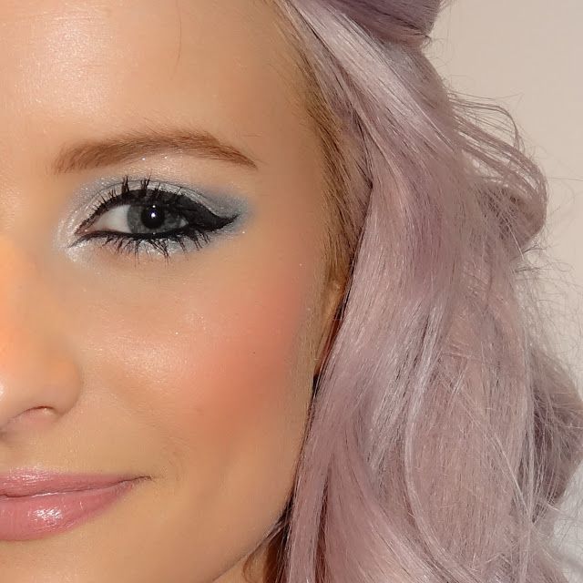 With Polyester Bride again in the tearduct and half way along the lower lash line, this beautiful blue shade consisted of Shattered over the lid and Oil Slick through the crease mixed with shattered to deepen up the the blue tones. Quite simple but I really liked how the colour seemed to suit the colours in my eyes. Shattered is such a gorgeous blue tone, I am going to try to use it so much over spring as the colour is so vibrant.