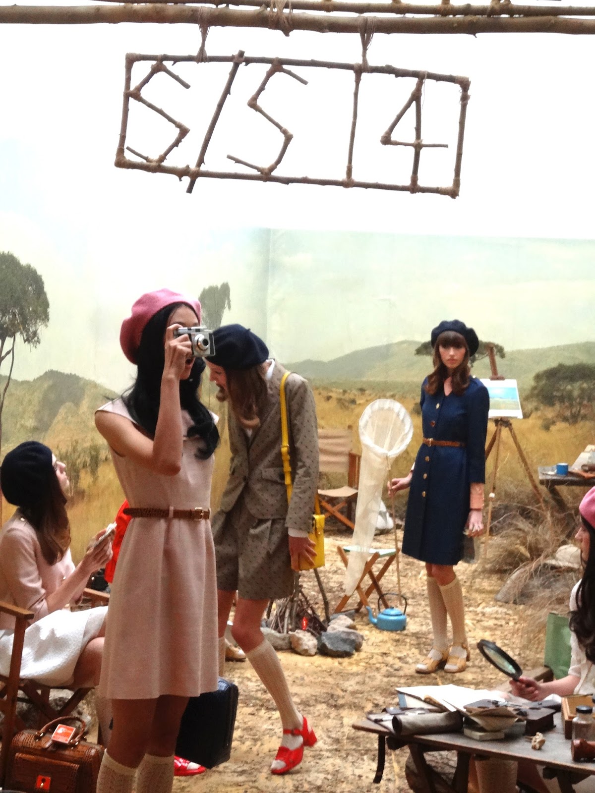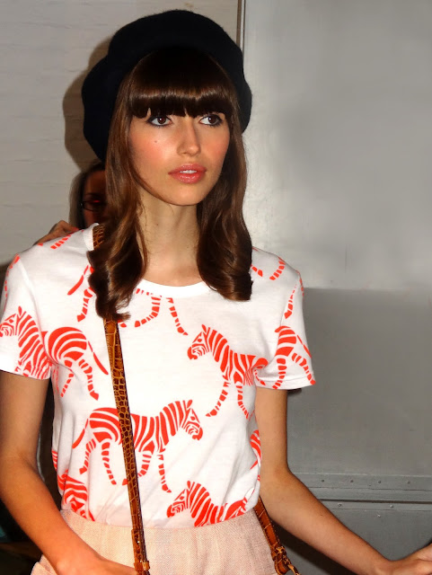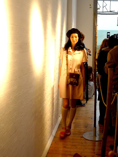 Day two came around and it was time for my final event, Orla Kiely S/S14. Held at the Elms Lester Gallery, the show was a presentation of the clothing rather than a catwalk show. The concept was safari, with all of the models walking into the presentation area, acting out their own character such as peering through binoculars or catching butterflies. It was so cute to watch and such a great concept to show off the garments. I absolutely loved the new bags in the collection, with the cutest totes and backpacks in beautiful prints, that only Orla can create. The make up was kept quite fresh faced with just-bitten lips with a slight gloss and eyeliner all around the eyes. The clothing was feminine and cute, with midi skirts, pinafore dresses, knee high socks and pretty blouses. Beautiful for spring and making me hate the fact that the weather has now changed dramatically.