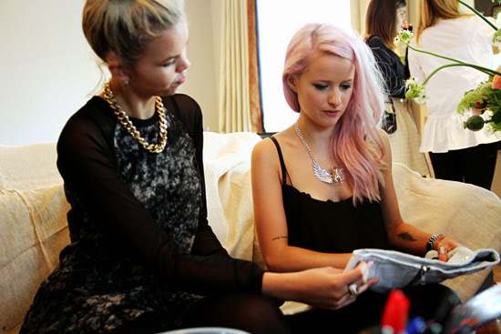 First stop was The Apartment, a beautiful £5Million abode in the centre of Covent Garden. I had been invited along by the lovely girls at Motel Rocks, but the whole event had been organised by Abi Marvel and her awesome brain child, The Apartment. Motel were there with a cute customisation table, where you could pin, paint and iron on patches and drawings to skirts, bags and tees. I went with a light denim mini skirt which I studded and aged along the edges whilst having a natter and a San Pellegrino. Laura Mercier were there with Birchbox to apply make up to those who needed sprucing for a show, Birchbox were there to let you fill up your own box, Sassoon were there to fix your hair if you had been blown by the wind and there were three wardrobes filled with designer clothing that you could borrow for an event. Such an amazing idea for any blogger to go along to between fashion shows, chill out on the sofas and chat with other bloggers. I was there for hours, chatting and chilling with so many lovely new faces.