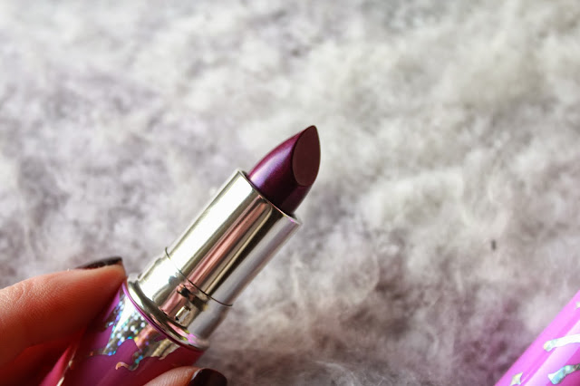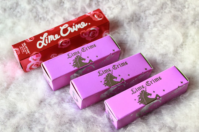 This is long overdue. I was shipped my box of Lime Crime beauties just before the last post before Christmas and I have been wearing them endlessly since then. They arrived wrapped in paper within a polka dot Lime Crime box, after only a short wait from the States. I bought them in the Black Friday sale for 30% off, so went a little crazy and bought four whilst I was paying for International shipping anyway. My favourite of the bunch is undoubtedly Poisonberry, the deep violet purple that appears in pretty much all of the Instagram posts nowadays. Great Pink Planet is a light, baby pink with blue tones, that very much reminds me of Mac Saint Germain with a very similar opaque finish. Glamour 101 is a deep vampy red and perfect matched with Mac Cherry Lipliner. All of the above are Opaque lipsticks and therefore form a full colour on first application. They really last amazingly and you can tell the amazing quality.