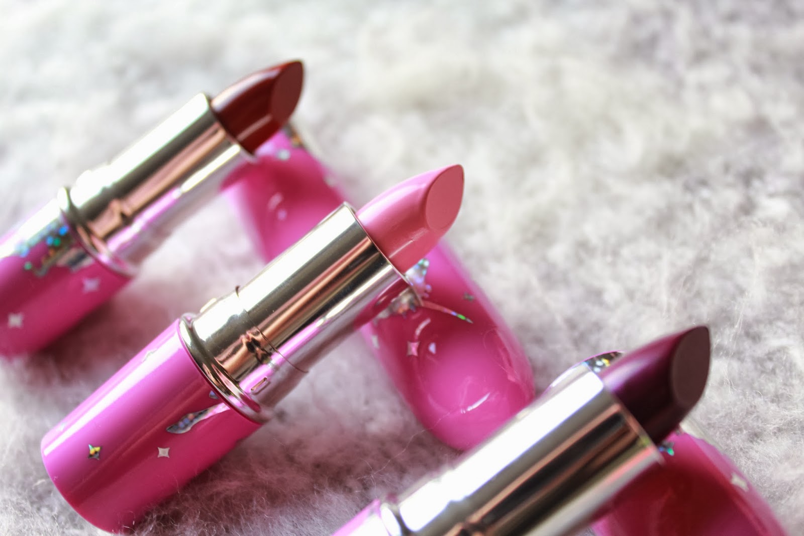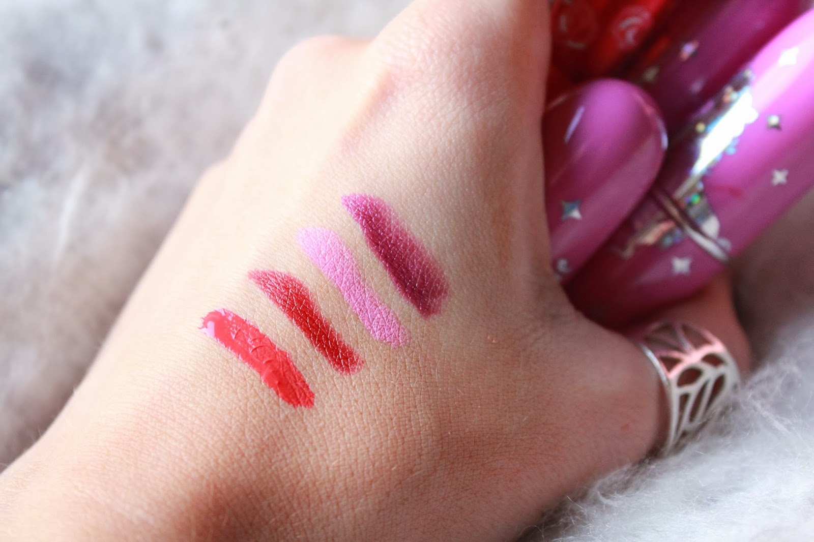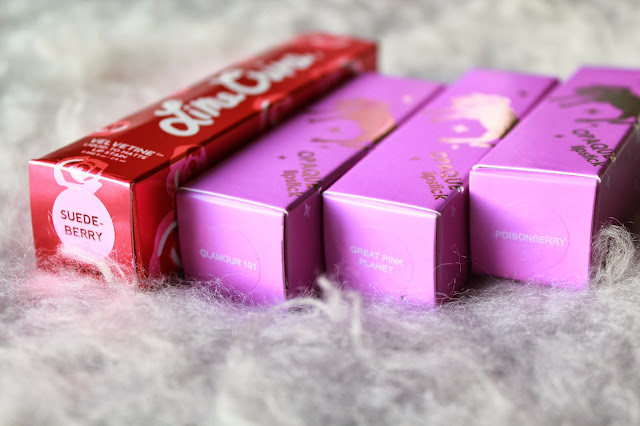 (Lime Crime Poisonberry, Great Pink Planet, Glamour 101 and Velvetines Suedeberry)