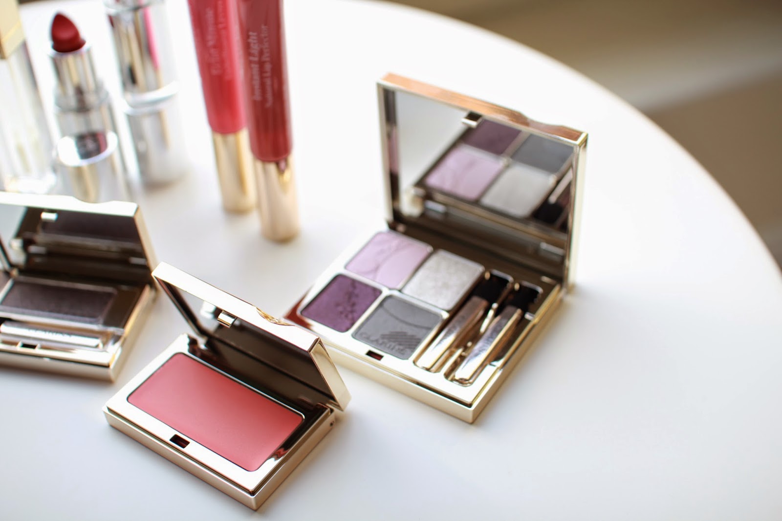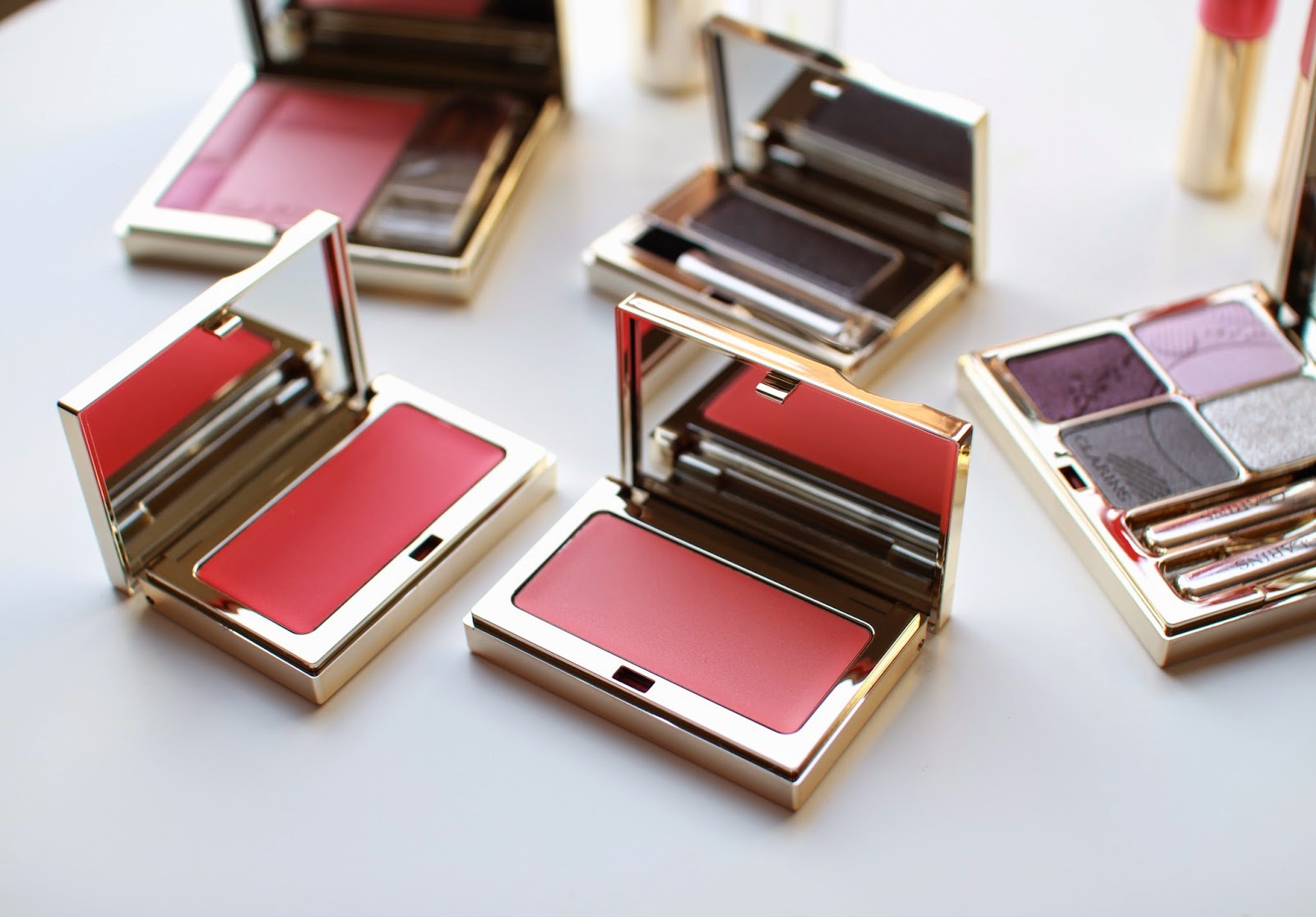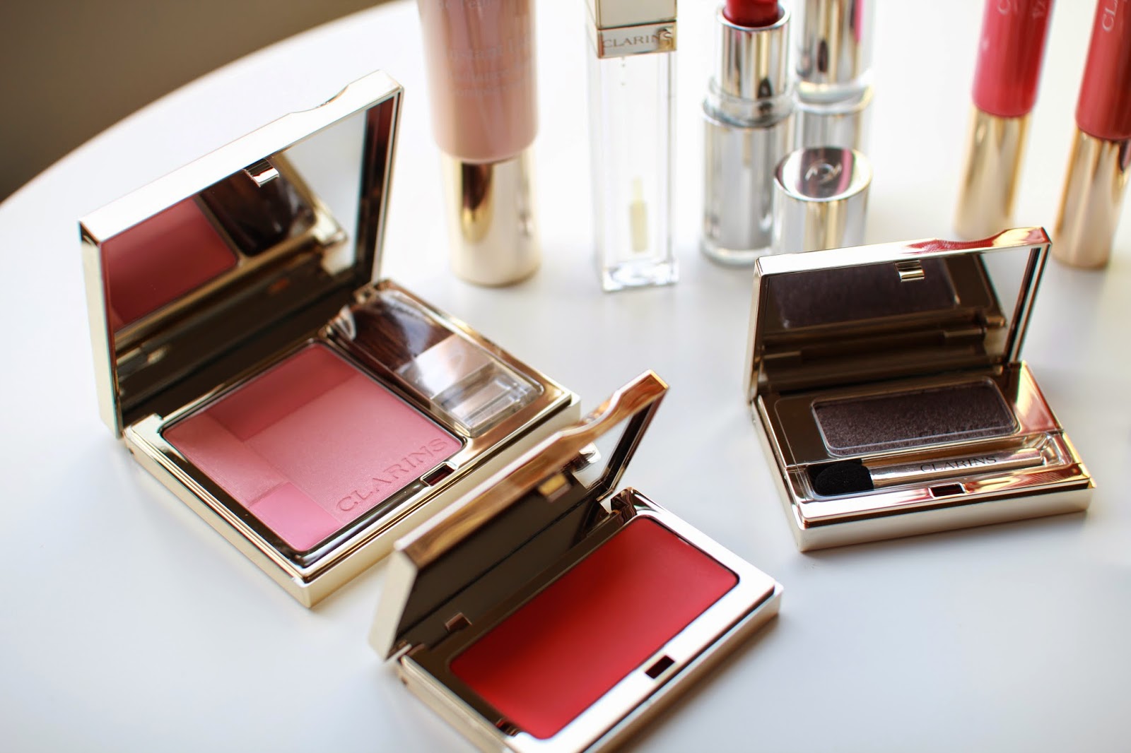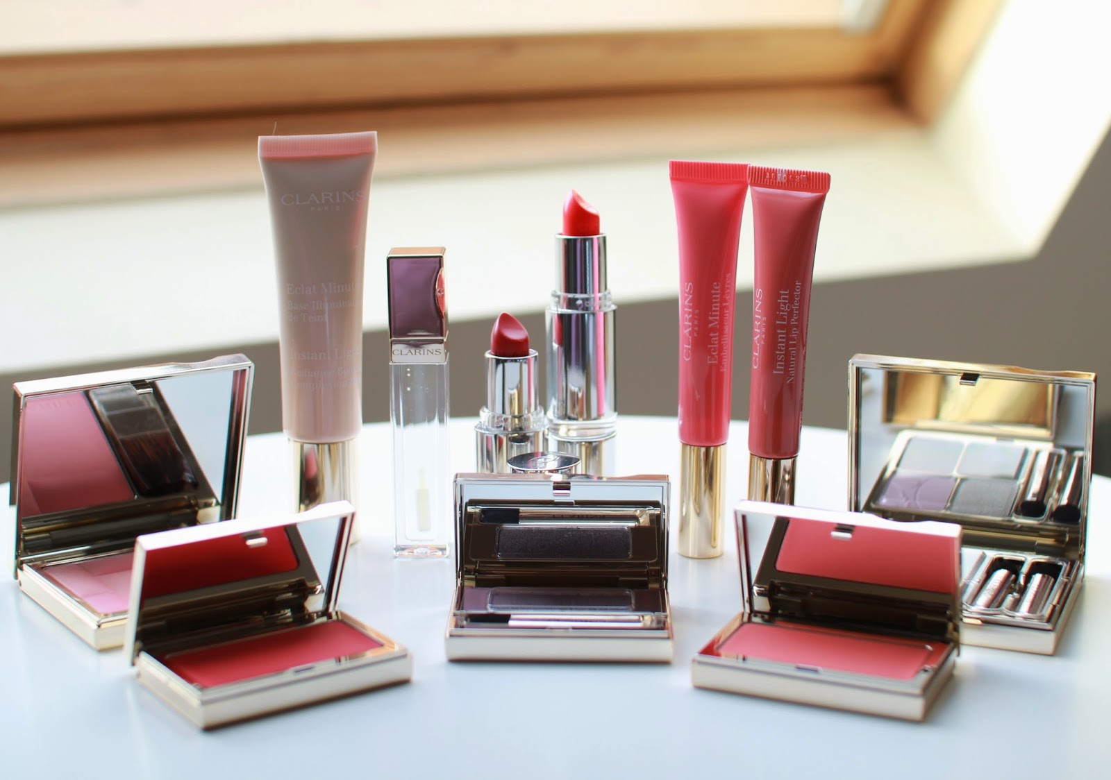 ( Clarins Spring Collection Blush, Complexion Base, Intense Gloss, Shine Sheer Lipsticks in Pink Orchid and Coral Tulip, Eye Quartet, Ombre Eye Shadow)*