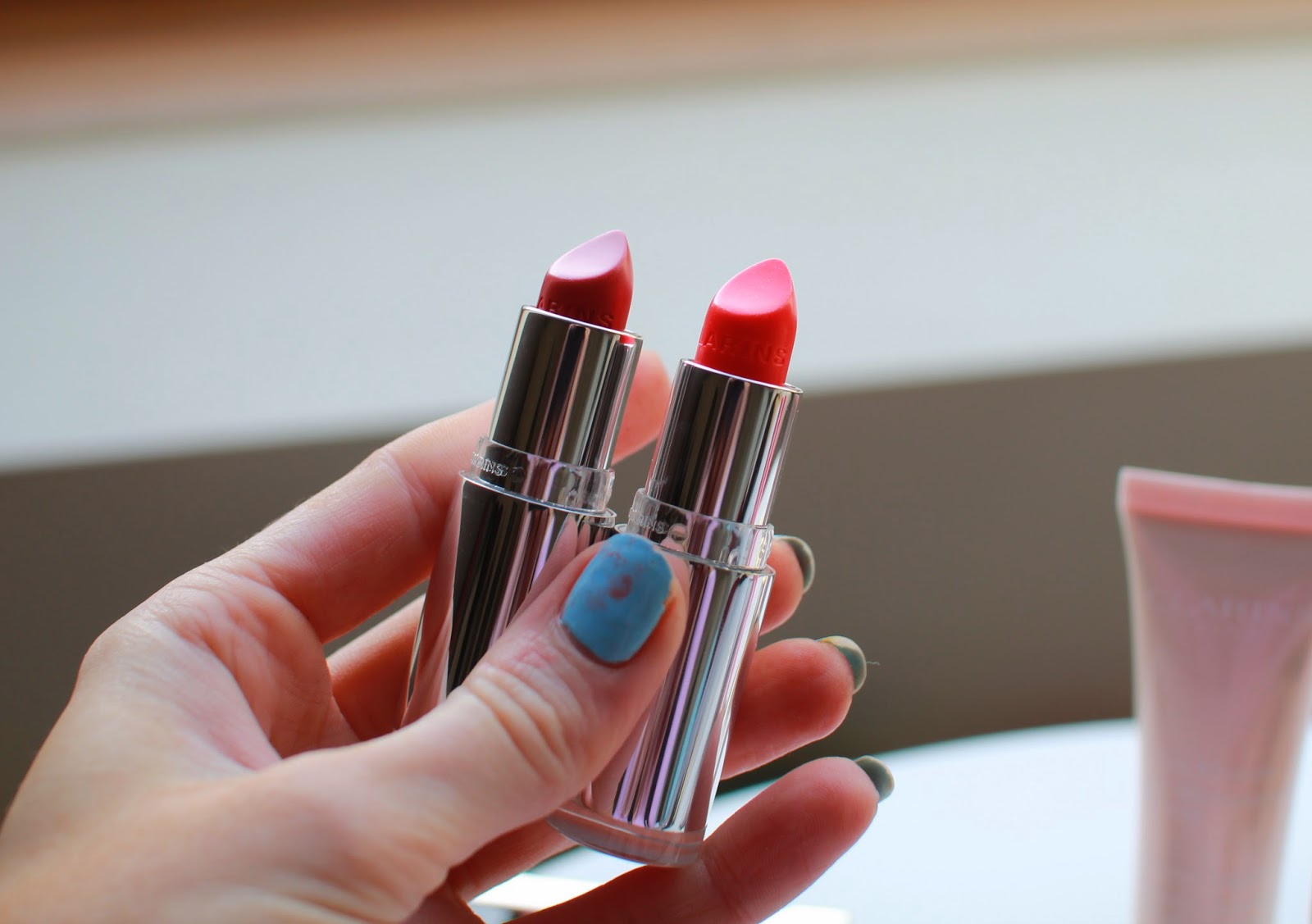 Well, there is not much more I can say about this collection other than, how shiny?! Everything looks so exciting and inviting and I just love the colours that Clarins have brought out for the spring. Corals and deep pinks, a touch of lilacs and silvers with the beautiful complexion bases for that ultra glowing summer skin. My favourite is probably the Shine Sheer Lipstick in Coral Tulip, that is just so moisturising and glossy when applied, but the most subtle coral pink youve ever seen. If you’d like to see me apply it, check it out in my lastest lipstick favourites video below. I’ve also fallen deeply in love with the coral peach blush, in a creamy texture, it doesn’t apply too much to the face, so you wont go overboard. But built up gently, you can get such a lovely peach sheen, perfect for the done but not done look we all love in spring. The complexion base comes in a few different shades and this is the very lightest, but works into the skin in a very light tone and gives a glowing complexion. It can be used alone or under foundation, although I must say that under foundation it doesnt give too much of an effect. I would recommend mixing with your foundation instead, to add a glow to your skin. But for me, I really need to try the second shade, to use alone on my ‘days off makeup.’ The lip perfectors and Miami Pink blush are Clarins classics, but I thought I would include them as they go so perfectly with a spring collection post. Miami pink is stunning as a cheek colour, really subtle but can again be built up to more than a light baby pink. And the lip perfectors, well, they’re famous for a very good reason.