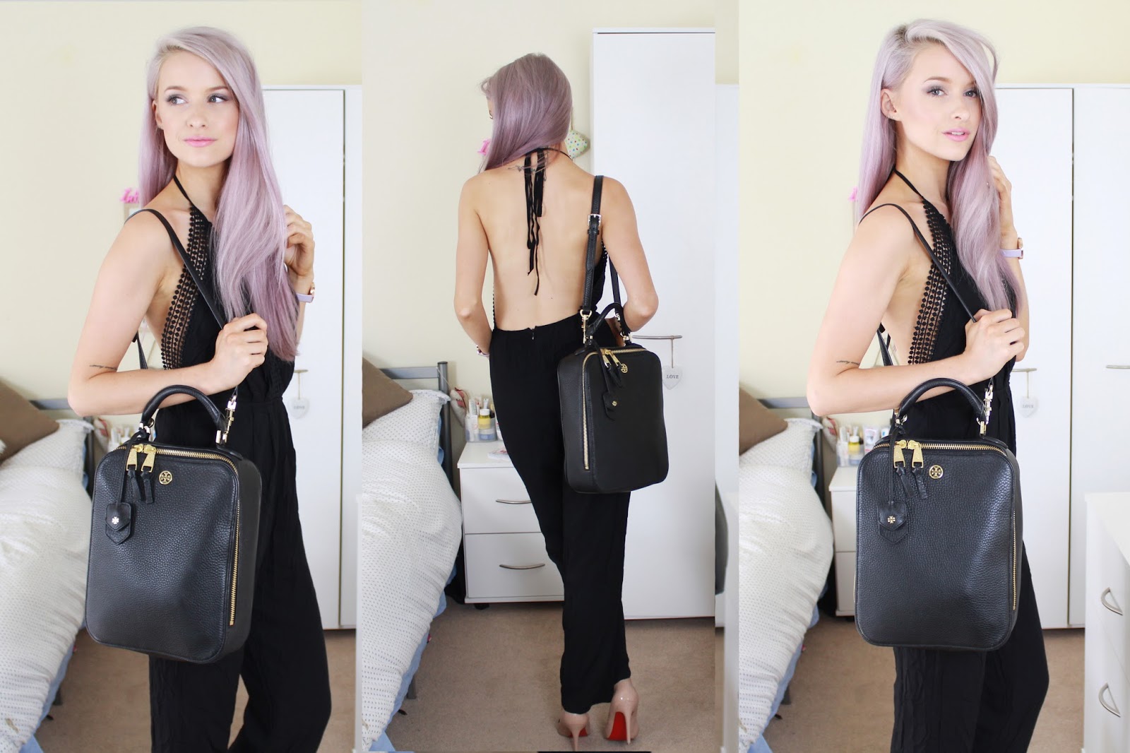 Excuse the creasing of this jumpsuit, honestly I didn’t quite have the time to iron it before taking these shots, yet I felt that I might just get away with it in black. Either way though, this jumpsuit is still equisite. On the border of super sexy and extremely sophisticated, the plunging neckline and hint of side boob as well as a fully exposed back make this piece like nothing else I own. This is going straight into my case next week for my holiday and Im hoping that it’ll make me look completely irresistible (hah, a girl can dream). The Louboutins were an obvious choice as was my Tory B. And if this outfit wasn’t cool enough, I accessorised with my new Ray Ban Wayfarers from Sunglasses Shop. These are the new lightweight version of the original wayfarers, and I think 100% more flattering. They have a slimmer body and less of a forward tilt, something that never looked quite right on me. Plus, the lenses are polarised, meaning that they reduce all glare and filter out excess light that the eyes aren’t able to take in. I have noticed a huge difference in wearing these, whereby super bright light is managed by the lenses far more than standard lenses, such as the original wayfarers. I always wondered why, even with the best sunglasses, the light was still too much for my eyes. Well, that is taken away by the polarised lense, so lets just say I’m converted over to this. They may be a little more money, but they will protect your eyes so much more, so its a small price to pay!